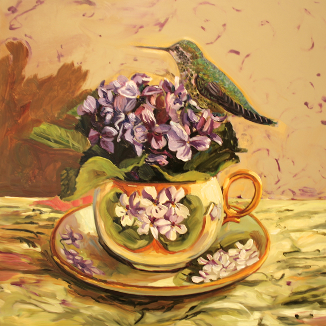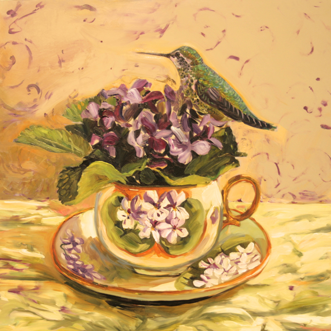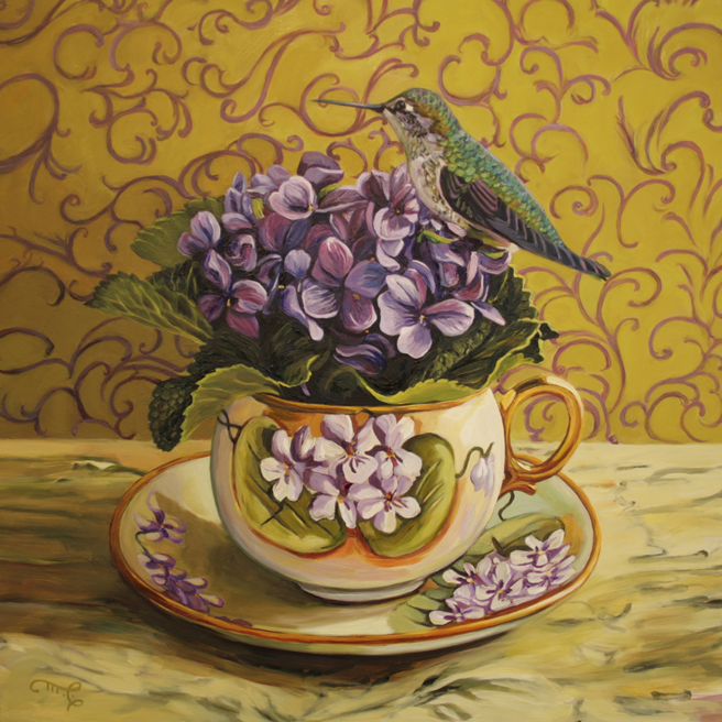 I just listed Magnolia Tea II on the website and will be bringing it into Gallery 25 with a flock of other Birds and Teacups. In this painting, I tried to bring home some of the magic of spotting a white hummingbird in the wild to capture it in a domestic still life with this unusual, unpainted Limoges demitasse set and Magnolia Grandiflora bloom which represents nobility and perseverance in the Victorian language of flowers.