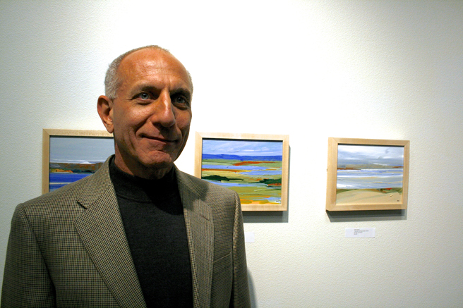 I knew my friend Tom Yacoe was in the show and I was eager to see his beautiful work. His acrylic paintings, Sierra Runoff, Russian River 3, and Seaside Looking South are on exhibit.