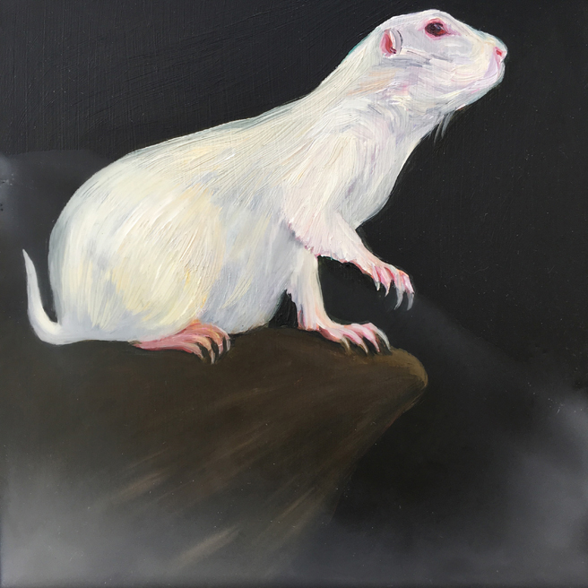Albinism, Albino Prairie Dog, Anthropocene, Exhibition, Fundraiser, Marie Cameron, Oil and Encaustic, Painting, Prairie Dog, Sanchez 50I50, Sanchez Art Center, White Prairie Dog