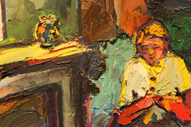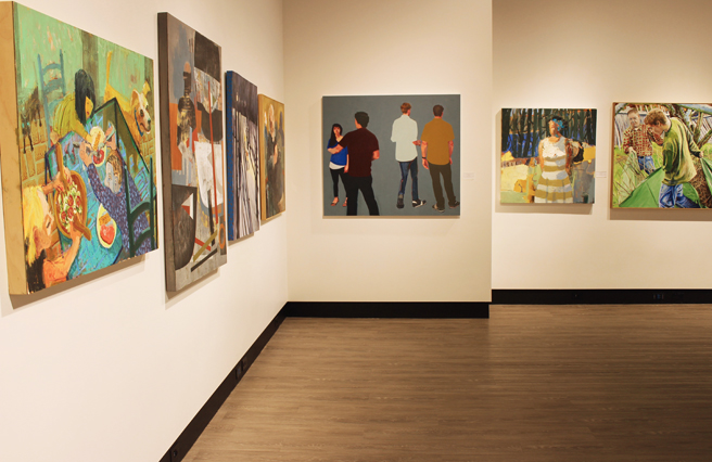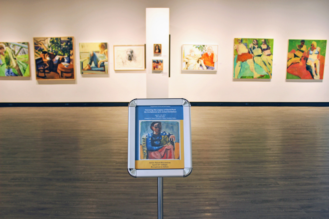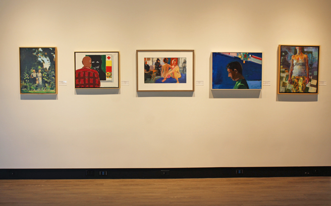 So nice to meet many of the exhibiting artists in Abstracts From Life: Bay Area Figurative Past and Present at the Members Reception held at NUMU last night in Los Gatos, California. It’s a beautiful exhibit curated by Marianne McGrath with exceptional work by Michael Azgour, Joan Brown, Suhas Bhujbal, Linda Christensen, Richard Diebenkorn, Dennis Hare, Mitchell Johnson, Brigitte McReynolds, Nathan Oliveira, Joan Savo, Jennifer Pochinski, William Rushton, Terry St. John and James Weeks. The show continues on until September 10, 2017. The following are a few photos from the evening and a small sampling of the work which glowed dramatically off of the dark walls (so hard to shoot)! All the more reason to come in and see it for yourself! For additional information on the artists, click on their names for links to websites and bios.