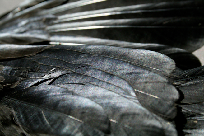 I ran into a crow today, or rather, I think someone else did, with a car. And with Fur Feathers and Fins opening in just a few days at the Pacific Art League and dead birds being on my mind for a while now I just had to gently scoop it up and take it back to my studio for a closer look. Nothing compares to studying the real thing I was so mesmerized by the subtle iridescence playing across the black and blues of the feathers, the crow still soft and fragile.