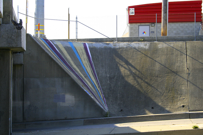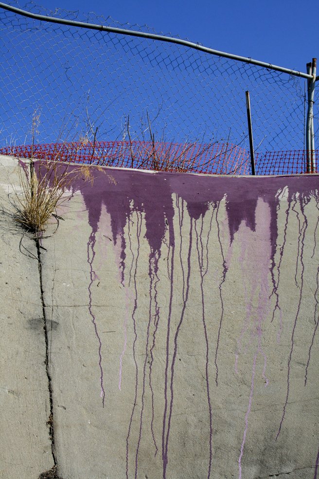 Happily, there’s something to see while driving about. I’ve particularly enjoyed the local street art the intersection of Stockton and Taylor where there is a sad concrete underpass. Someone had noticed it was in desperate in need of some humanizing! For me, this spot combines color field painting with elements of urban landscape. The fences, signs, power lines and structures speak of human activity while the paste-ups or “wheaties” sing of the human spirit. I like how all this contrasts with the very sparse representation of nature (the fluttering pigeon, the shadow of a tree, the clump of dying grass in a crack).